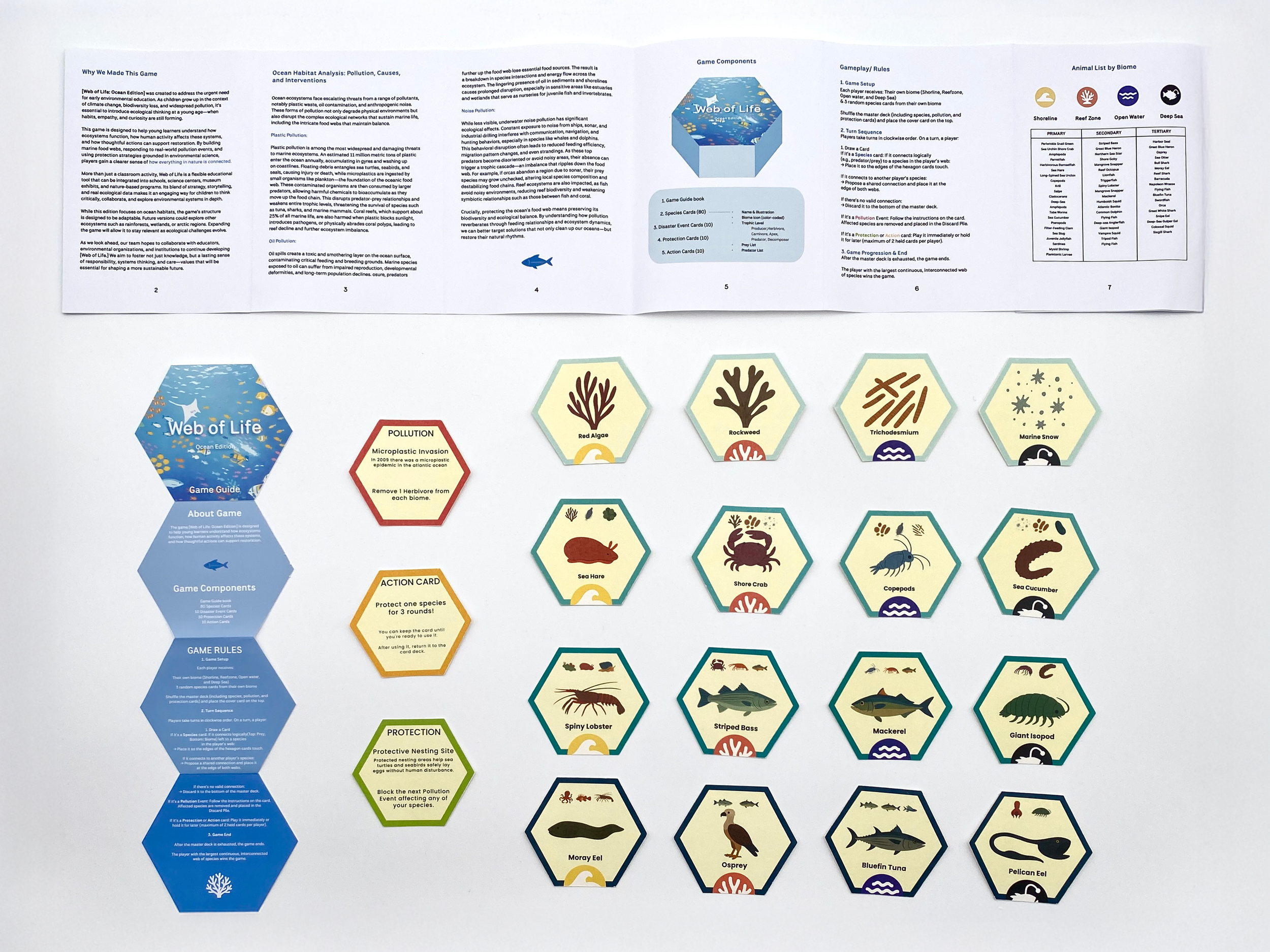 Web of Life: Ocean Edition is a research-driven card game that teaches children how marine ecosystems function as interconnected systems—where disruption and recovery ripple across food webs.